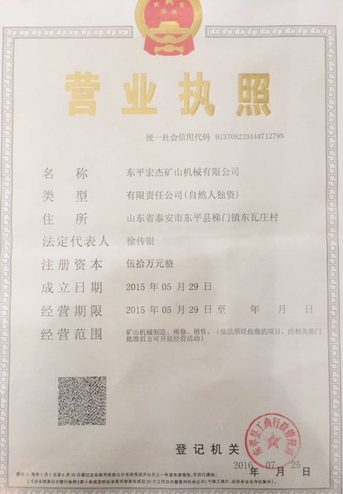 東平宏杰礦山機械有限公司資質榮譽 2016-11-14 本文被閱讀 3260 次